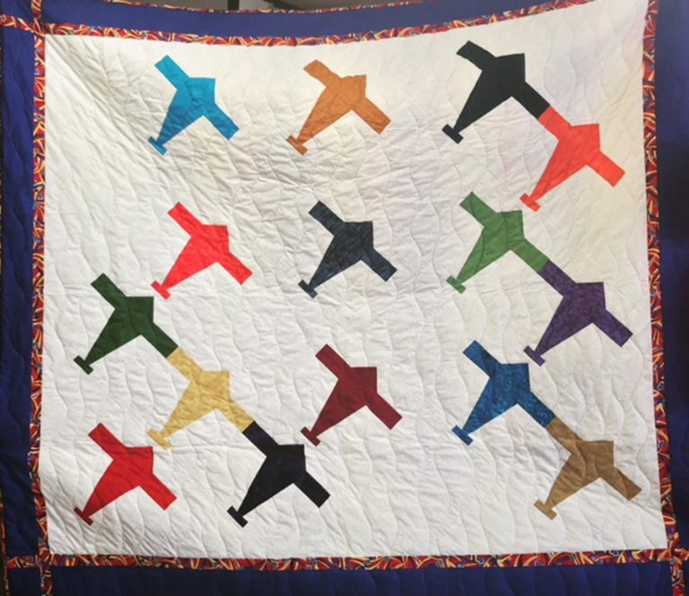 The exhibit features quilt blocks made mostly by women in the Liberal area.
