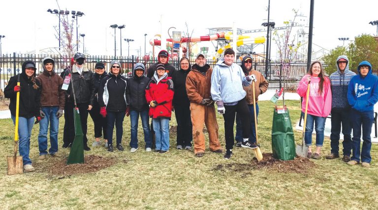 Someone forgot to send Mother Earth a note about the 4-H Earth Day/ Arbor Day Community Service Project that took place on Earth Day, Saturday April 22, 2023. It was a balmy 37 degrees with 30mph winds but that didn’t stop nearly 20 members of the Ford County 4-H Council from zipping up their coats, pulling on their gloves and using their hands for greater service to their Community, their Country and their World by planting 7 trees. The 7 Eastern Redbud trees, representing each of the seven 4-H groups in Ford County, were planted in front of the Long Branch Lagoon here in Dodge City, KS.