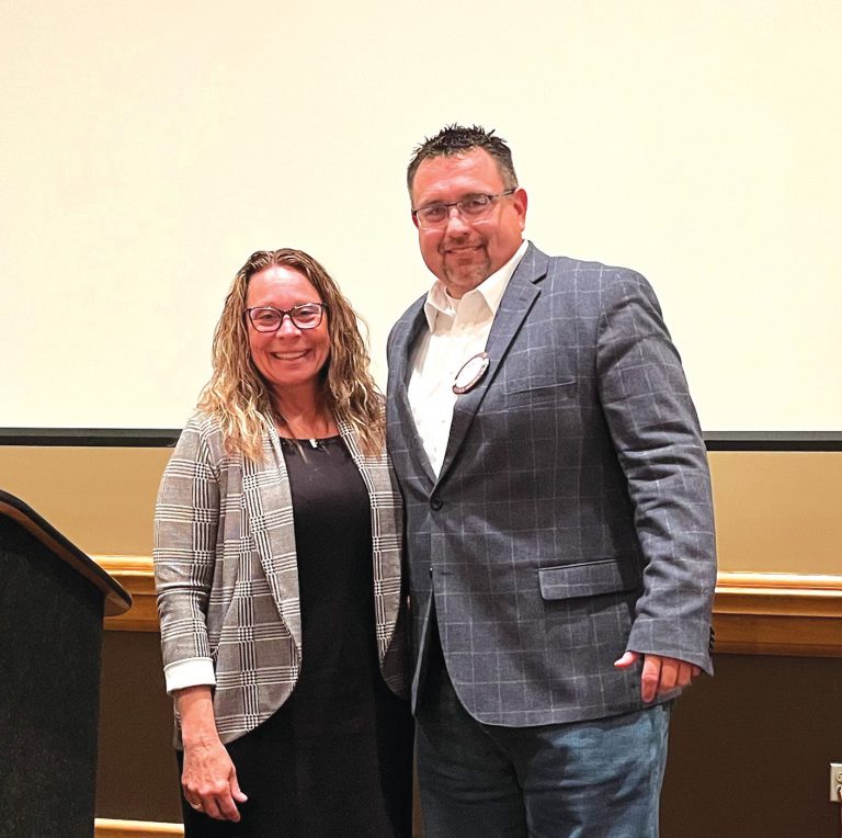 Dodge City Rotary Club learned about the Community Foundation of Southwest Kansas’Women of Inspiration club compliments of Lori Bone. Here she is with Rotary President Ryan Ausmus May 1. [SUBMITTED PHOTO]