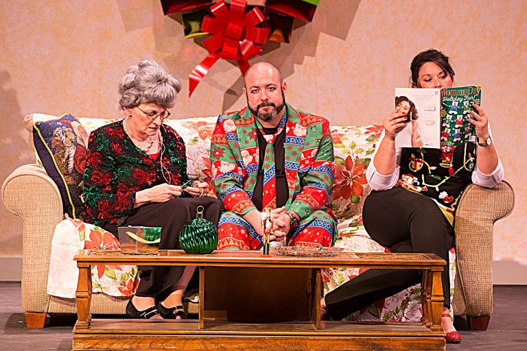(Bryan Stammer) Jeff Cunningham is caught in the middle of an argument between his wife (Darcy Jaeger) Lauren Cunningham and his mother (Darleen Clifton Smith) Mrs. Cunningham. The Regifters concludes production this weekend at the Depot Theater. PHOTO BY JOSH ROESENER/SUBMITTED PHOTO / Dodge City Daily Globe