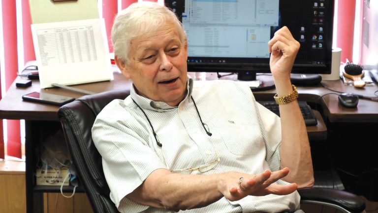 Marion County Record editor and publisher Eric Meyer answers questions during a July 25, 2024, interview in his newsroom office. He says he doesn’t know of any other newspaper that has been raided like his, but “crap like this happens.” [PHOTO BY Grace Hills/Kansas Reflector]