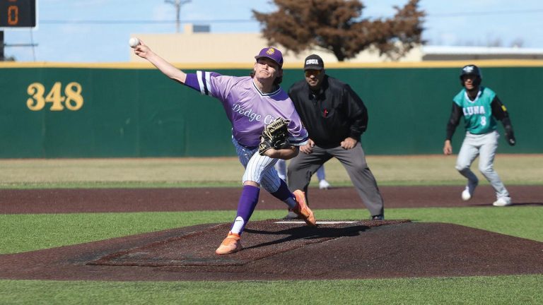 Dodge City CC baseball player, Bryce Chambers tossed seven innings in game one of the series versus Pratt to help the Conquistadors earn a 5-2 victory.[PHOTO BY Jahaziel Alualu-Talamoa/Dodge City CC Athletics]