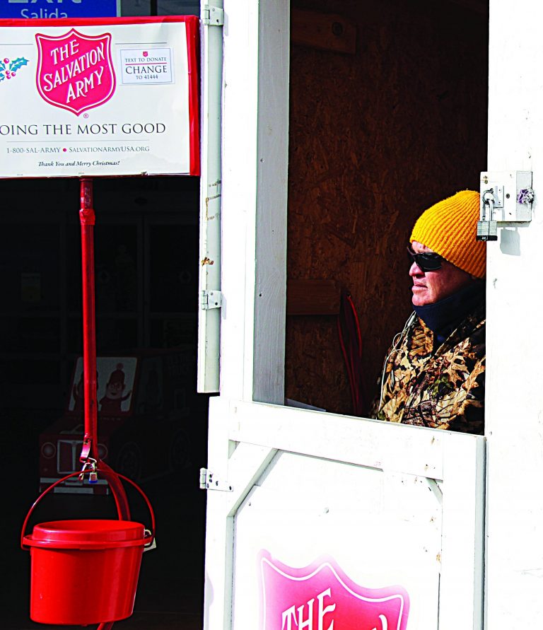 Fred Utter Sr., a recent arrival to Dodge City, has been ringing a bell for the Salvation Army throughout the Red Kettle campaign. Utter has turned his life around and enjoys every second of sharing in the holiday scene. ROGER BLUHM/DODGE CITY DAILY GLOBE / Dodge City Daily Globe