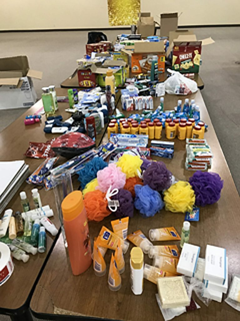 The Blue Star Mothers organization received many items to be packaged and sent off to active military members. The group put the packages together on Wednesday to send as New Year's gifts. SUBMITTED PHOTO / Dodge City Daily Globe