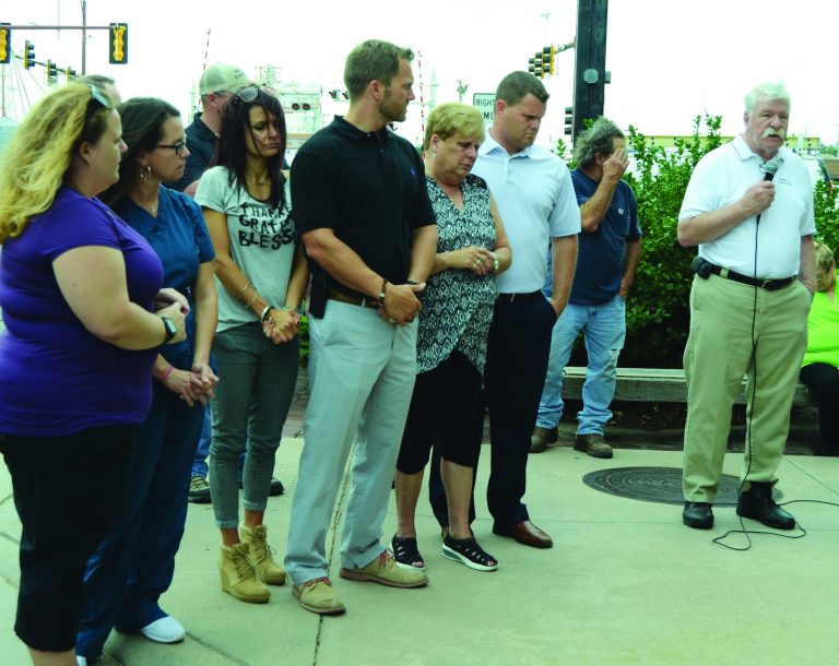 More than 50 people attended the dedication ceremony of the Joe Bogner Medallion at Front and 1st streets on Wednesday.