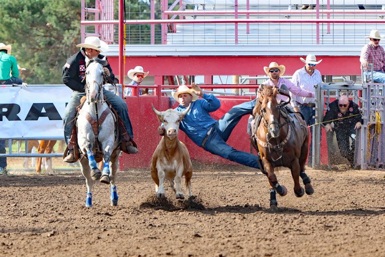 Ted Harbin Roundup Rodeo Three-time National Finals Rodeo qualifier Olin Hannum makes a run during Wednesday morning’s bulldogging competition. He also ran in the first… Login to continue reading Login…