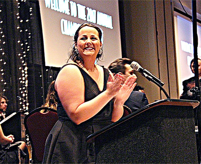 Chamber president Tara Burkhart applauds one of the award recipients during the banquet on Saturday. PHOTO BY EMILY GARCIA/DODGE CITY DAILY GLOBE / Dodge City Daily Globe