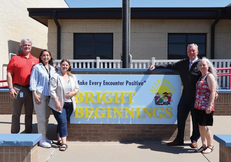 A new partnership between the USD 443 Bright Beginnings Early Childhood Center and the DC3 Early Childhood Education program will help Bright Beginnings staff members stay current with their state certifications. Pictured are Dr. Fred Dierksen, USD 443 Superintendent; Sheila Bertelsen, Bright Beginnings Education Specialist; Bianca Alvarez, Bright Beginnings Principal/Head Start Director; Dr. Harold Nolte, DC3 President; and Lorna Ford, DC3 Early Childhood Coordinator. [PHOTO BY Lance Ziesch]