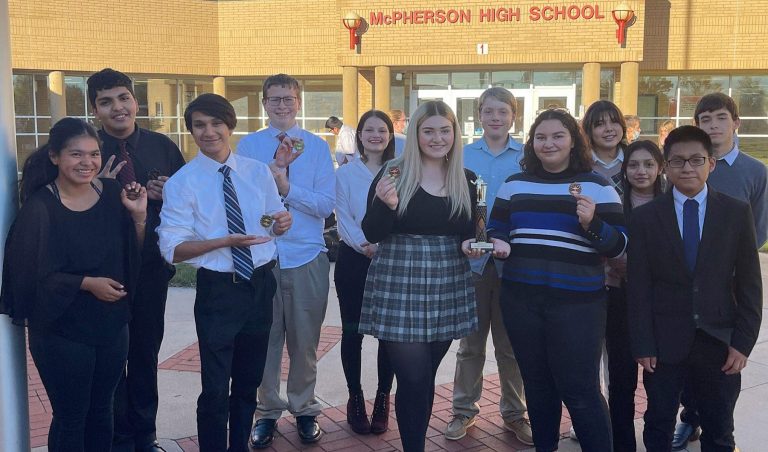 Erica Rodriguez, Yamir Gardea, Brennan Carbajal, Owen Wesley, Savannah Barr, Autumn Klein, Kyle Ruehle, Elizabeth Cox, Paris Rivas, Arianna Ponce, Francisco Lopez and Joel Soto took 2nd place at the McPherson Debate Tournament Saturday, Oct. 30. / Submitted by Johnny Dunlap