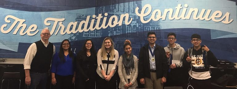 Dodge City High School was represented by six debaters last weekend at the Kansas Championship Series in Wichita. All three pairs went 3-3 in the very competitive meet. Those pictured include Coach Steve Ray, Yesenia Guzman, Maria Cruz, Autumn Klein, Jackie Soto, Alejandro Rangel, Hever Arjon and Daniel Soriano. SUBMITTED PHOTO / Dodge City Daily Globe