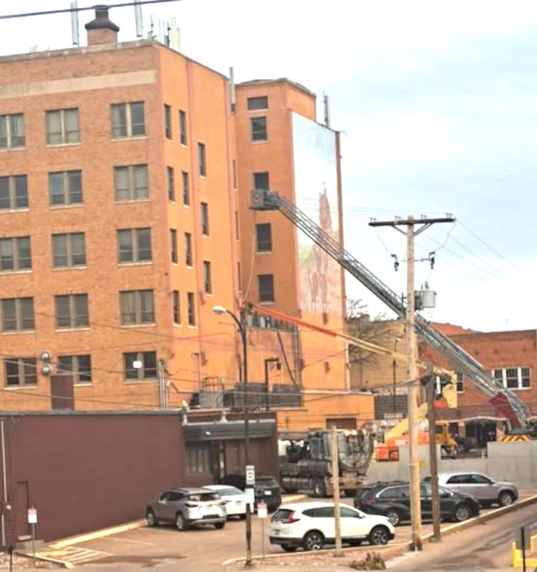 Work has begun on the historic First National Bank building in Downtown Dodge City! According to the City of Dodge City the interior is being demolished due to water damage, pigeon damage, and mold. Repairs will be made to the building then it will be resold by the city to a developer. Plans are in the works for Stan Herd, the original artist and his team to hopefully repaint the iconic stage coach mural.[PHOTO BY Josh Roesner]