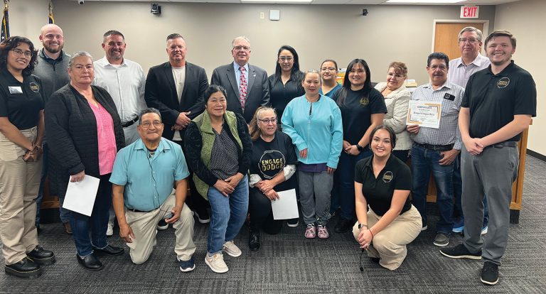 Engage Dodge graduates Amy Le, Anselmo Vicente Ixmay, Claudia Valenzuela, Cynthia Rivera Enriquez, Diego Villegas Ruiz, Ofelia Paniagua and Trang Le-Deleon were honored at the Oct. 21 Dodge City Commission meeting.