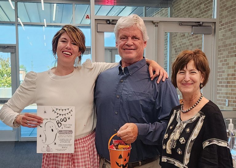 Dodge City Globe Editor Whitney Hodgin poses with USD 443 Superintendent Fred Dierksen and district Public Information Director Kerri Baker in the school administration building October 2023. It wasn’t until this editor witnessed Super Dierksen’s earnest blue eyes and genuine kind voice expressing his hopes and dreams for local students’ continued success that she wanted to enroll her own kiddo to enjoy that special kind of rare attention. Unfortunately, her fur baby CC Cat reported she already knew everything and doesn’t need to go to school.[COURTESY PHOTO]