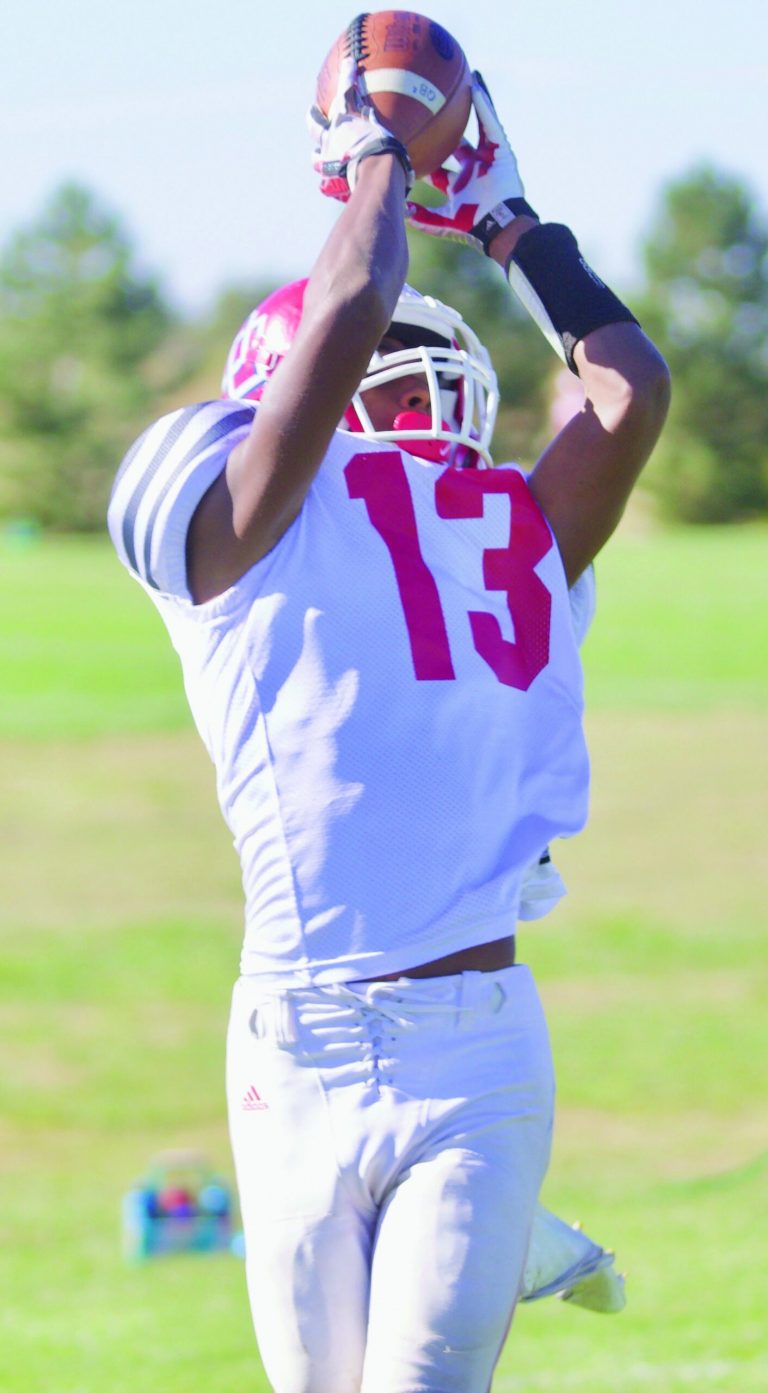 Red Demons sophomore wide receiver DeJon Delgado catches a pass in WednesdayþÄôs practice. SHELTON BURCH/STAFF PHOTOGRAPHER / Dodge City Daily Globe