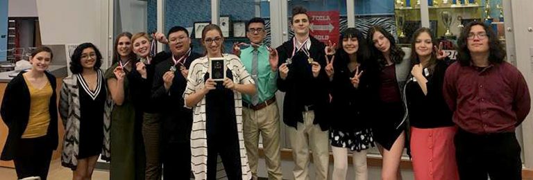 The DCHS forensics team of MacKenzie Swan, Ayleen Solis, Rebekah Mazza, Kylie Smith, Brian Nguyen, Allison Haselhorst, Hever Arjon, Gage Banks, Angelica Avina, Destiny Harris, Viviana Tarango and Kegan Salem competed at the Eisenhower High School sweepstakes in Goddard. [SUBMITTED] / Dodge City Daily Globe
