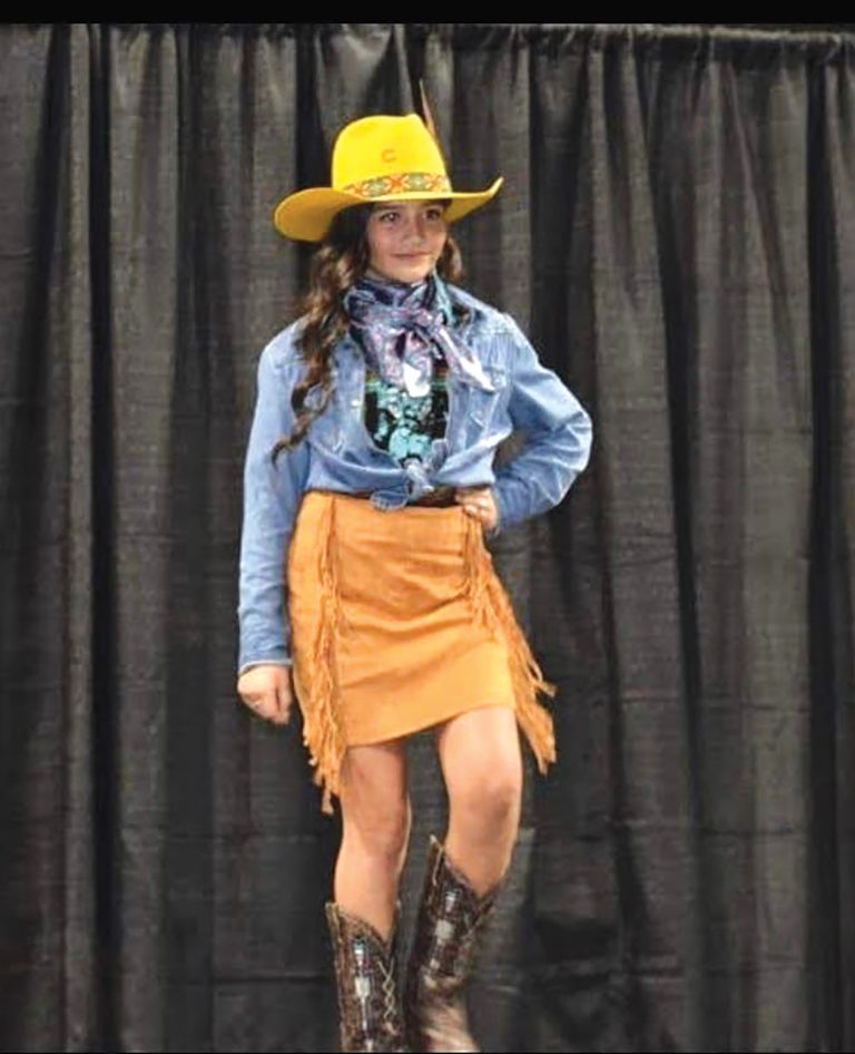 Photo-Caption:Multi-year title winner and native daughter Italia Conteras models Dodge City Days from her nose to her toes in the sweet and strong style judges look for. This ensemble was from the legendary lady lady-like looks that came from the former Paisley and Pearls.