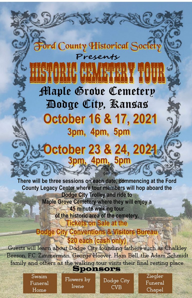 Tickets for the Historical Cemetery Tours scheduled in October are available at the Visitors Information Center in Dodge City. / Provided by Ford County Historical Society