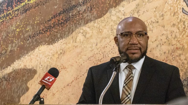 Anthony Lewis talks about the significance of Juneteenth during a June 17, 2024, celebration at the Statehouse in Topeka. [PHOTO BY Sherman Smith/Kansas Reflector]