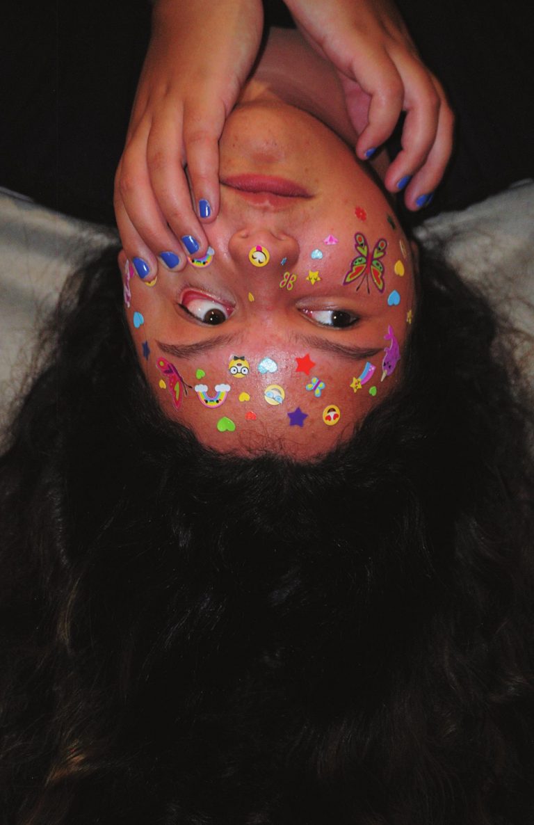 This image was the reference photo DCHS student Josephina Cox used for her self portrait she painted that features her upside down and decorated with stickers. [SUBMITTED PHOTO]