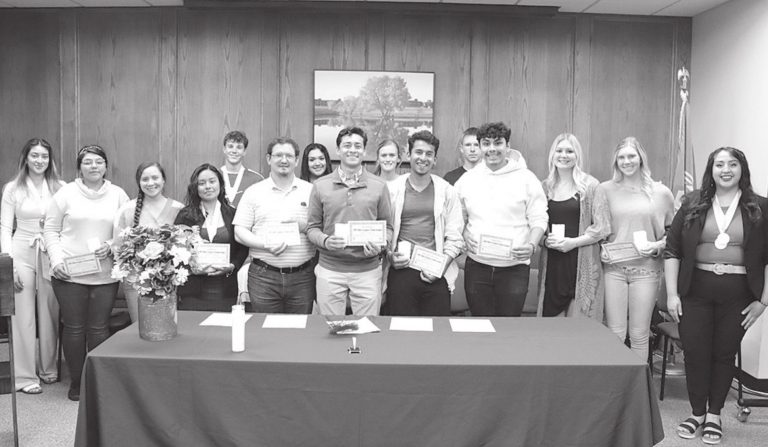 The Kappa Psi Chapter of Phi Theta Kappa (PTK) Honor Society at Dodge City Community College (DCCC) inducted 14 new members and installed four new officers Tuesday, April 19. The new members inducted were Jennifer Katz, sophomore from Springfield, Neb.; Hailey Ellis, sophomore from Meade, Kan.; Damian Garcia, sophomore from Dodge City, Kan.; Juan Camilo Susa Cortes, freshman from Bogotá, Colombia; Alan Cervantes, sophomore from Cimarron, Kan; Steven Brown, sophomore from Dodge City, Kan.; Litzy Rosales, Vice President of Service, freshman from Atlanta, Ga.; Olivia Ortiz, sophomore from Dodge City, Kan.; Yesenia Lopez, sophomore from Dodge City, Kan.; Perla Acuna, Vice President of Fellowship, freshman from Norcross, Ga.; Janik Buch, Vice President of Leadership, freshman from Süderbrarup, Germany; Brisa Ontiberos, freshman from Dodge City, Kan.; Addison Spencer, freshman from Vernon, Texas; and Reese Unruh, freshman from Greensburg, Kans.