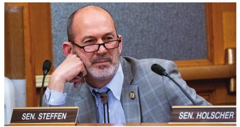 Patty Winger, representing the Kansas Daughters of the American Revolution, presents Santa Fe Trail Association Dodge City/Ford Dodge/Cimarron Chapter President Bob Bunyan with a certificate for “Keeping the Santa Fe Trail Alive” Sunday, April 3 at the association’s chapter meeting at the Dodge House. “The DAR was one of the original organizations that promoted saving the history of the Santa Fe Trail,” Bunyan said.