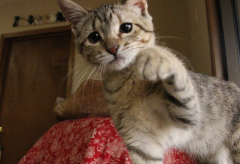 Jenge is a three-month old kitten at the Ford County Humane Society. While most of the animals that go through the Society are dogs, cats and kittens are also prevalent. The Society is currently caring for a pair of cats with the feline AIDS, and feline leukemia is rampant in Dodge City's feral cat population. PHOTO BY SCOTT EDGER/STAFF PHOTOGRAPHER / Dodge City Daily Globe