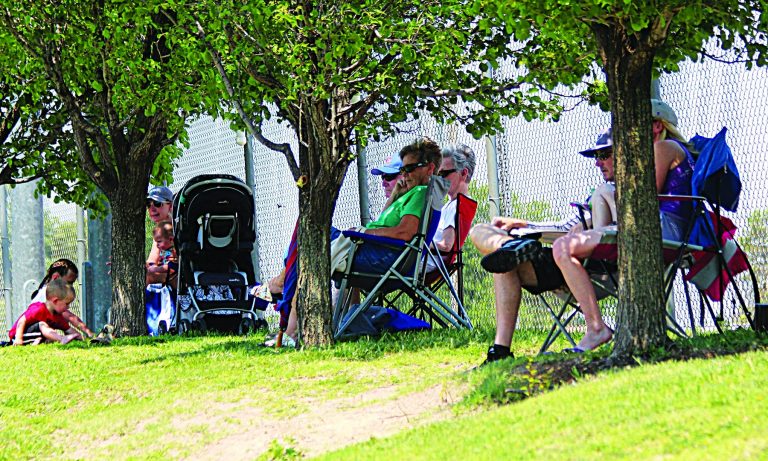 Fans sit in the shade while watching Dodge City play in a 16-and-under baseball tournament on Friday morning. Before the game ended, temperatures in the area were already in the low 90s. JOHN ZETMEIR/DODGE CITY DAILY GLOBE / Dodge City Daily Globe