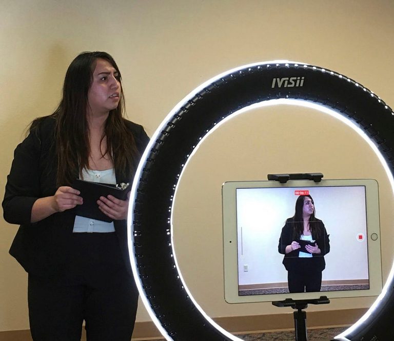 Dodge City High School senior Olivia Ramos performs in the first virtual forensics meet in a tournament hosted by St. Thomas Aquinas. / SUBMITTED PHOTO