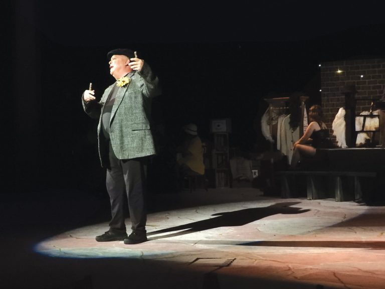 Photo-Caption:Brian Richardson excelled in the role of “Amos.” Here he sings the sad-sack anthem “Mr. Cellophane.”