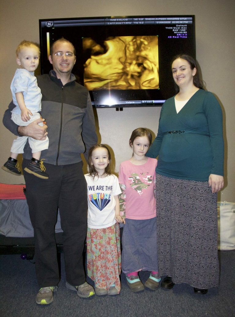 Insight and out: The Middlebrooks family pose with their baby-to-be. (From left to right) Jason, dad Josh, Jessica, Yelena and mom Lydia pose with unborn baby Timothy at Sneak-A-Peak Imaging Studio. PHOTO BY WHITNEY CARTER/DODGE CITY DAILY GLOBE / Dodge City Daily Globe