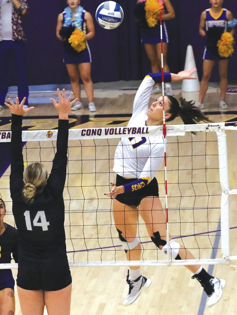 Dodge City CC volleyball player, Azra Arslanoglu led the Conquistadors with 10 kills as the team posted a .479 hitting percentage in a dominate three set win over Seward County. [PHOTO BY Konstantina Mantziori/Dodge City CC Athletics]