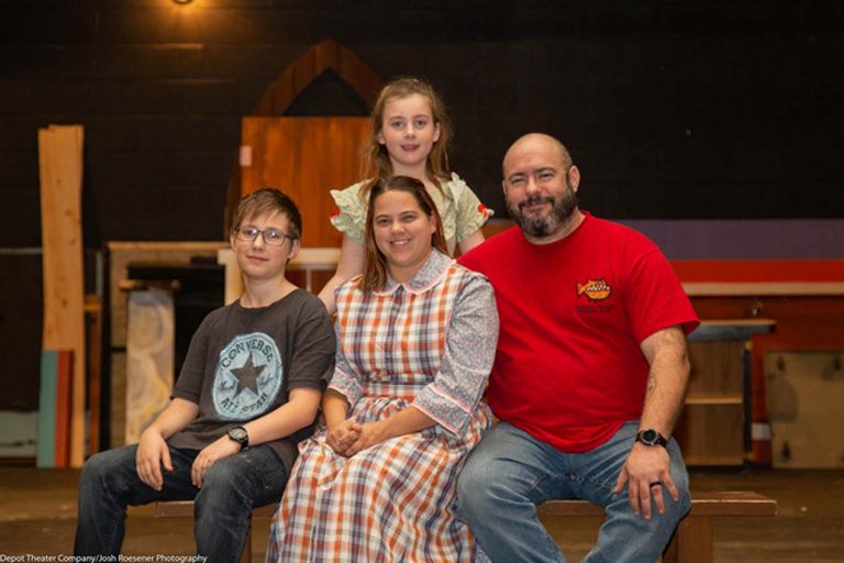 Four members of the Stammer family, Zeke, Charlie, Mellisa, and Bryan, hold major roles in A Laura Ingalls Wilder Christmas, which will open Dec. 6 at the Depot Theater Company. PHOTO BY JOSH ROESENER/FOR THE DAILY GLOBE / Dodge City Daily Globe