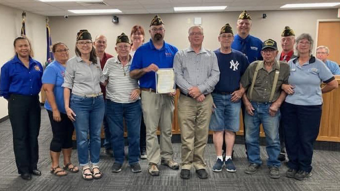 Dodge City’s own Howard Gotschall VFW Post 1714 members at the Sept. 3 Dodge City Commission meeting: (left to right) Daisy Struzik, Dorothy Briseno-Bremer, Cathy Heikes, Tom Pyle, John Trombly, Tina Gerber, Casey Fitzgerald, Chuck Taylor, Jerry Whitaker, Eugene Struzik III, Bobby Lauppe, Tim Graves and Sarah Lauppe.[COURTESY PHOTO]