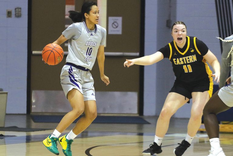 Dodge City CC women’s basketball player, Savi Mi and the Conquistadors continued their hot shooting to start the season shooting 51.6% in a 94-51 win over Eastern Wyoming. [PHOTO BY Mike Smith/ Dodge City CC Athletics]